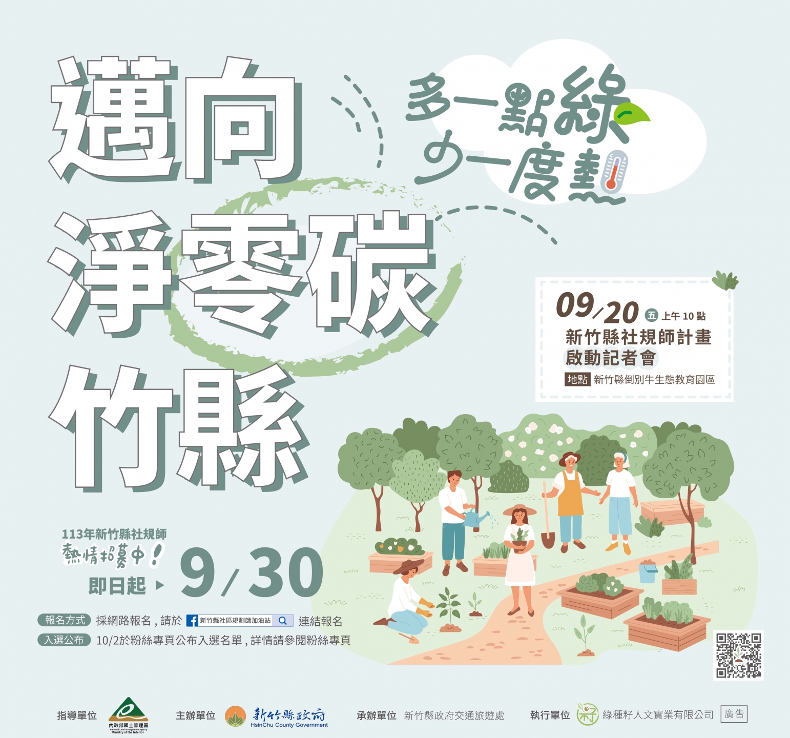 期望透過此一兼具理論與實務的系列課程,培訓出一批能夠為新竹縣減碳降溫、為社區建構出全方位生命鏈結,打造出一個有故事、有生命、有靈魂的社區創生園地社區規劃師。